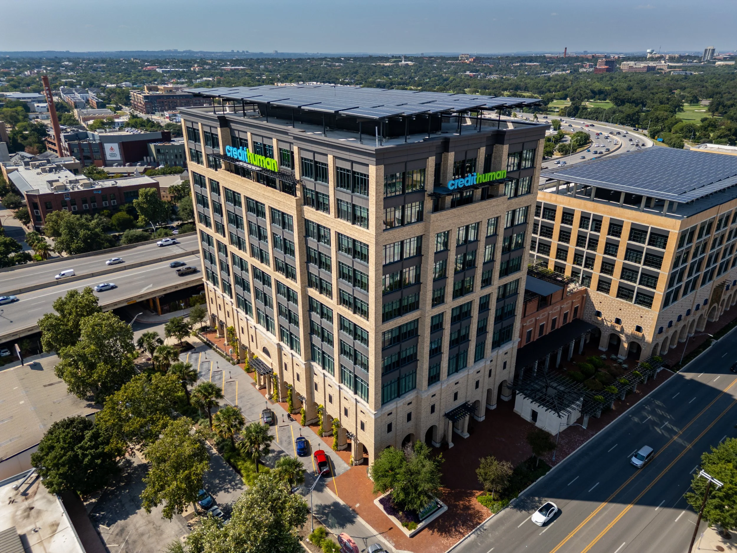 Credit Human, a federal credit union chartered in San Antonio in 1935, serves more than 200,000 members nationwide. In January 2021, the organization opened its new headquarters at 1703 Broadway, adjacent to downtown San Antonio. This 200,000-square-foot, 12-story podium-style tower anchors the Broadway Office Development, a Platinum LEED Certified Class A office complex jointly developed with Silver Ventures. The development includes a structured parking garage and a mid-rise tower known as Oxbow, all situated on a 3.1-acre site at the northwest corner of Broadway and Pearl Parkway, near U.S. Highway 281 and the Pearl—a vibrant mixed-use district on the historic Pearl Brewery grounds.
